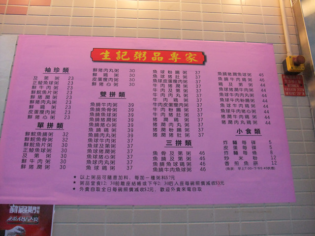 首先第一站就是食尚玩家介紹的生記粥品囉!!!!!!!粥的種累超多的